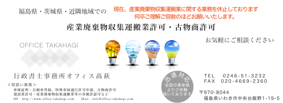 産業廃棄物収集運搬業許可・古物商許可